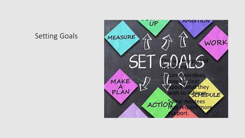 In our programme the goal(s) should be set by the week 6, although they could be set earlier, depending on the mentee.